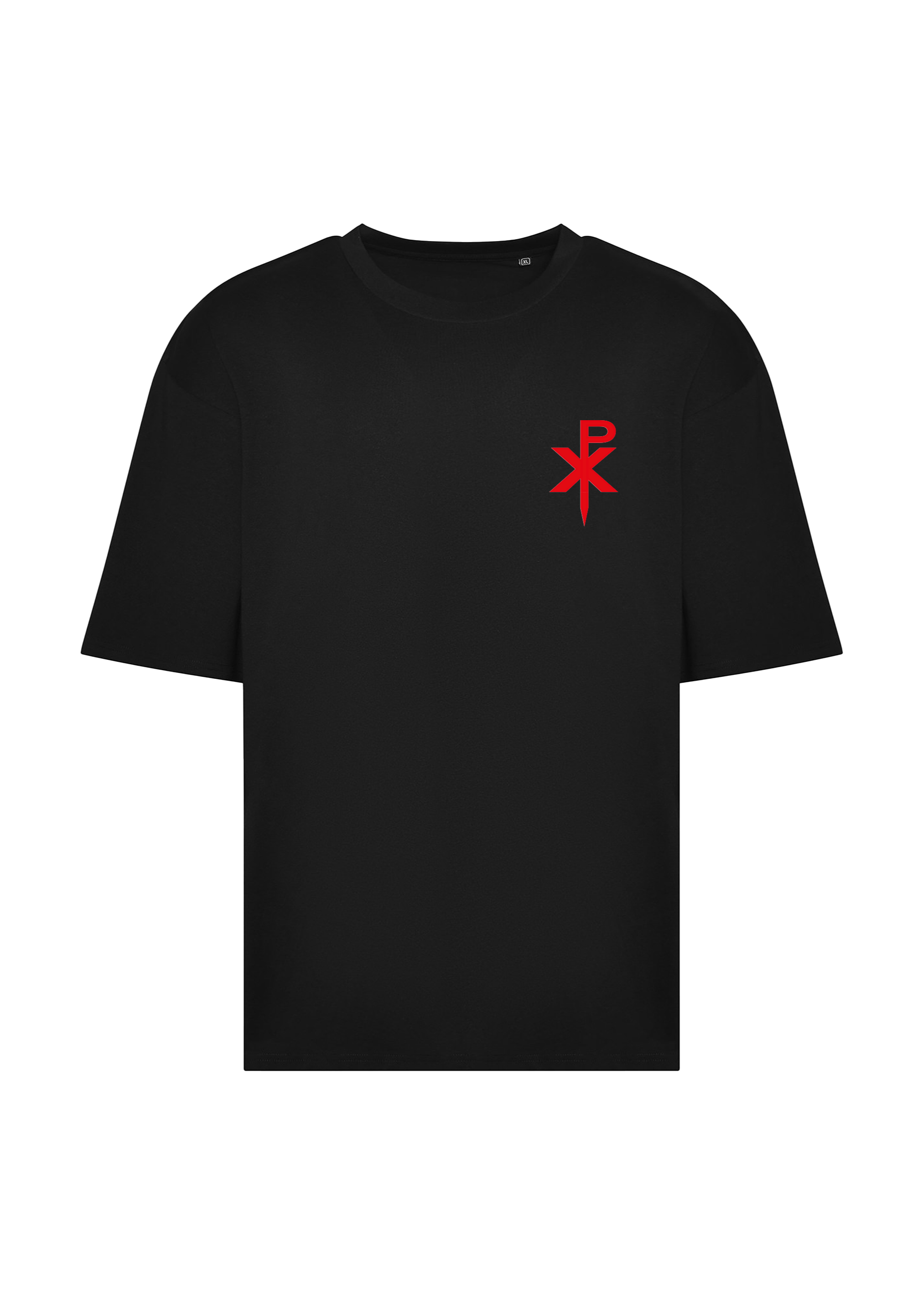 A minimal yet powerful statement: the ancient Chi-Rho symbol (☧) — one of the earliest known christograms — placed over the heart.
