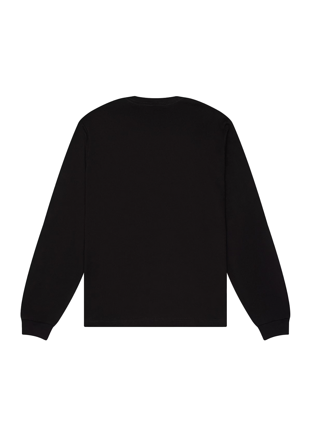 A sober and radical essential: a black long-sleeve T-shirt with an Orthodox cross printed over the heart.