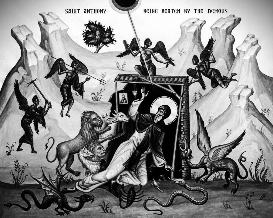 Dans le silence absolu du désert, Antoine découvre une autre réalité : le combat spirituel. Là, il affronte les démons, non pas au sens symbolique, mais comme des entités bien réelles qui le tourmentent. Tentations, apparitions monstrueuses, violences physiques : il endure tout sans fuir. Il comprend que cette lutte fait partie du chemin vers la liberté intérieure.